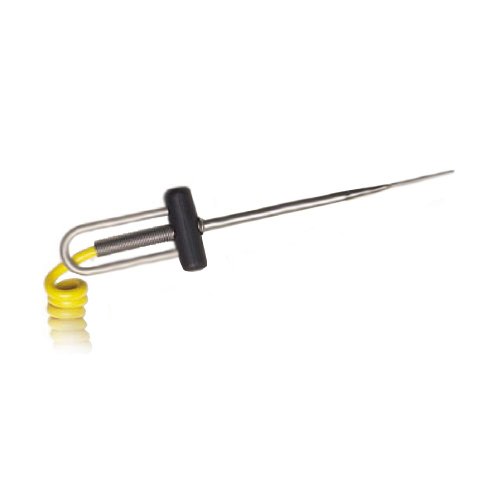Cooper atkins type k microneedle probe w/ coiled cable this microneedle probe w/ type k plug features a delicate tip that is designed to give fast readings in small and semi-solid products with minimal effect on the product itself. it has a polyurethane-coated coiled cable that is 12" when retracted and 48" when extended, and a temperature range of -100° to 500°f. this probe is not recommended for use in highly acidic or alkaline substances such as citrus and tomato products. type k plug delicate, fast-reading needle tip good for use w/ small and semi-solid products polyurethane coated coiled cable not recommended for use in high acidic or alkaline products 1 year warranty temperature range: -100° to 500°f (-73° to 260°c) max tip temperature: 500°f (260°c) max cable temperature: 176°f (80°c) response time: 1 second in liquid retracted cable length: 12" extended cable length: 48" shaft length: 3 1/2" shaft diameter: 3/16" tip diameter: 1/32" model #: 50209 133423